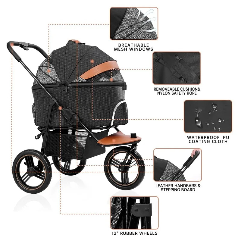 3-in-1 Functionality: Seamlessly switch between a pet stroller, jogger, or detachable carriage for travel, adapting to your lifestyle.